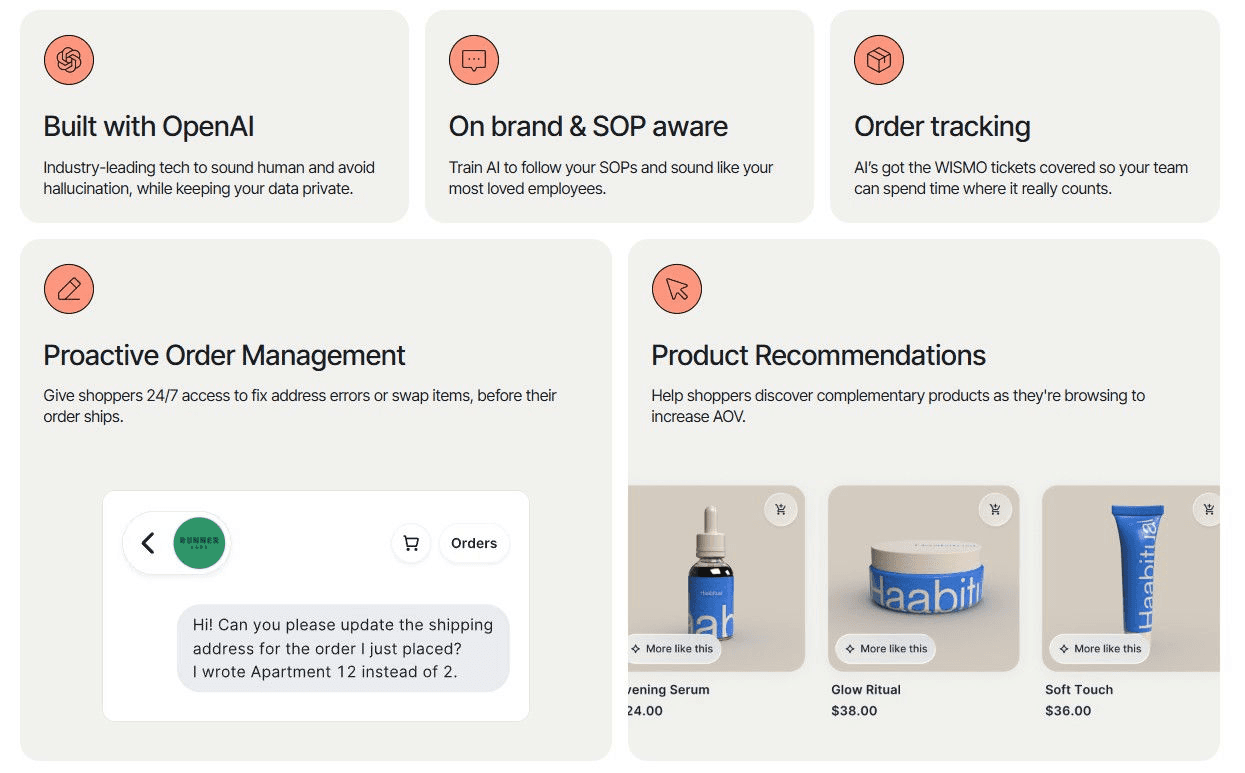 Gorgias is one of the most popular helpdesks for D2C brands. It centralizes all your support tickets in one place and enriches them with lots of extra context about a buyer's profile. Through Gorgias, you can connect directly to your eCommerce store and edit orders, modify subscriptions, and refund payments without leaving your helpdesk.