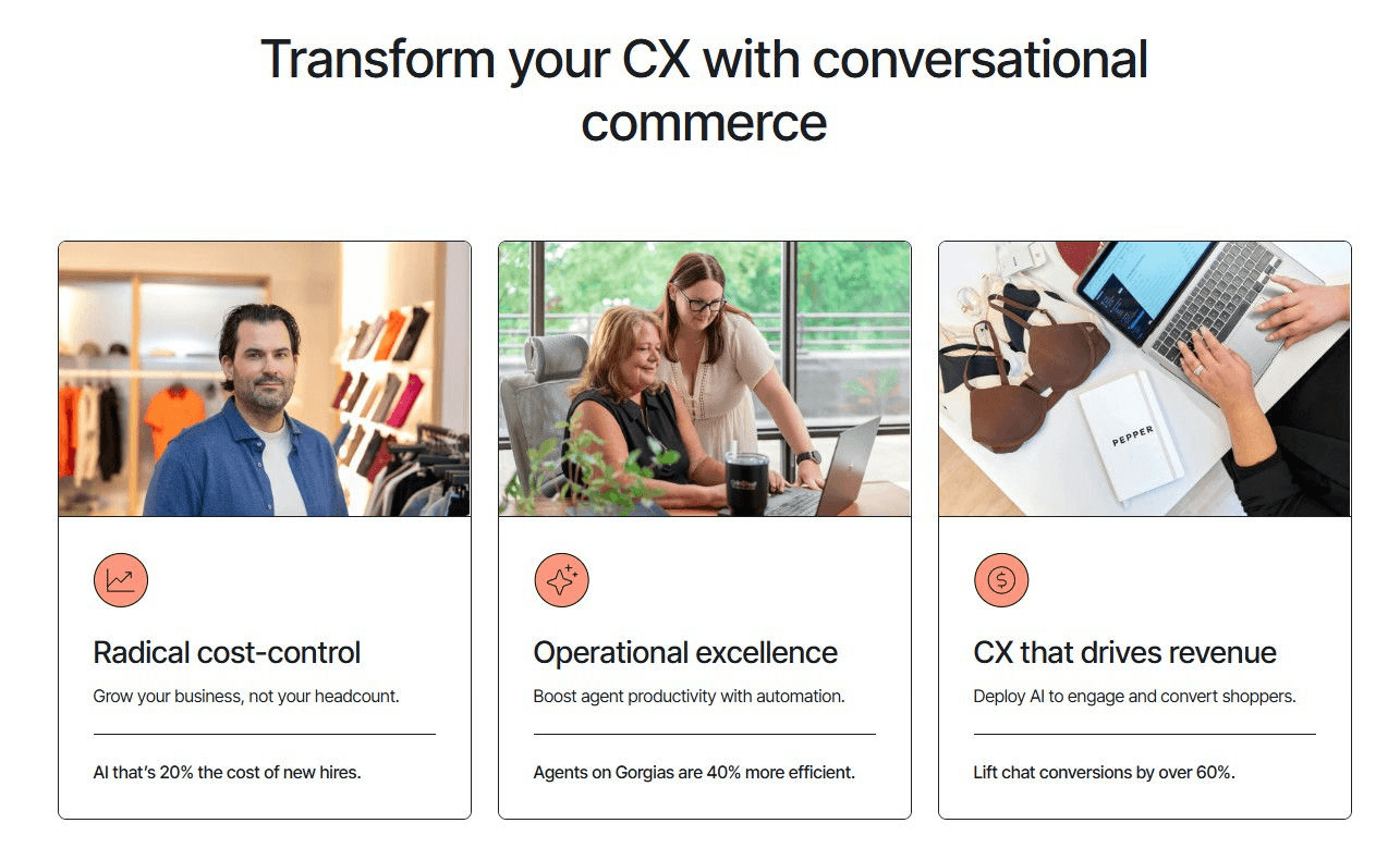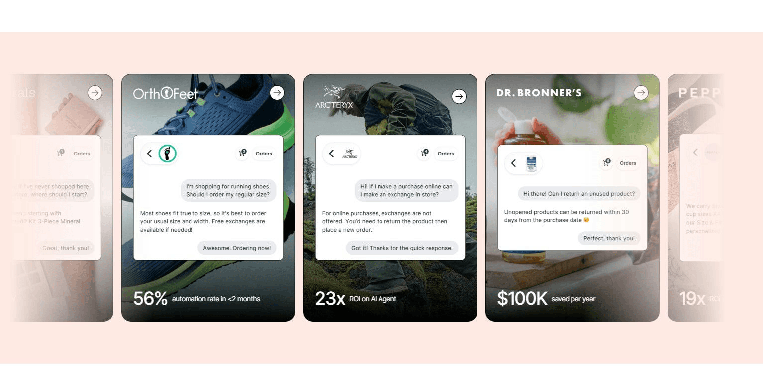 Gorgias also unlocked cost savings and revenue impact for the overall business: double-digit business growth YoY while maintaining headcount, and a 12% conversion rate on phone calls (equivalent to $300K/month earned by CX over phone). “When we first started with Gorgias, our goal was to hit 30% automation in 30 days. We surpassed that and are now above 50% automation, and we’re still climbing.” —Courtney Bajek, Customer Service Lead at Orthofeet